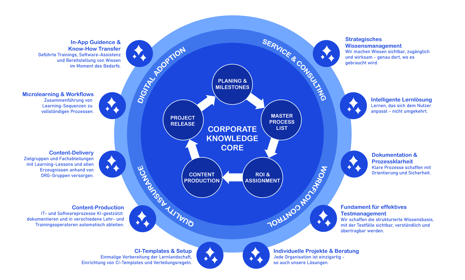 OVIO can generate numerous media content from just one recording of your software: From the necessary process documentation to multilingual E-learning environments to in-app guidance (AI). This means less frustration fewer problems and higher productivity in business applications.